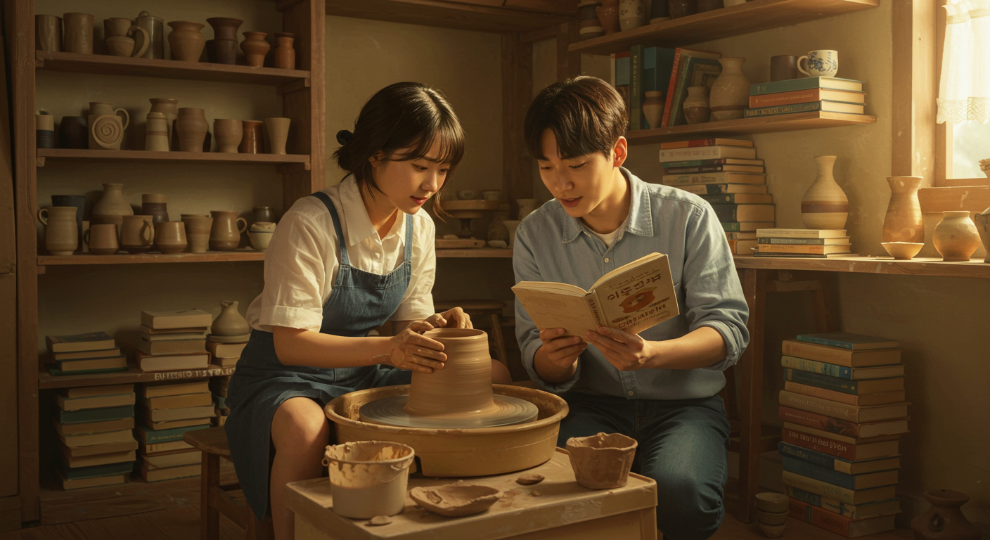 그렇게 '읽는 그릇, 담는 이야기' 프로젝트가 시작됐다. 두 사람은 매일 오후 한 시간씩 만나서 전시 계획을 세웠다. 수아는 새로운 작품들을 만들고, 민호는 각 작품과 어울리는 책들을 선별했다.